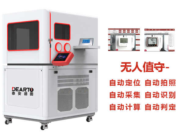 DTSL Pro-svr3 全自動溫濕度計檢定系統,是泰安德圖全新自主研發(fā)的全自動溫濕度計拍照識別檢定系統。系統由德圖全系列溫濕度檢定箱、精密露點儀、精密數字溫度計、拍照機器人和自動識別系統組成的全自動檢定裝置。系統支持自動定位、自動拍照、自動采集、自動識別、自動計算、自動判定,全自動完成整個檢定行程,無需人工干預。